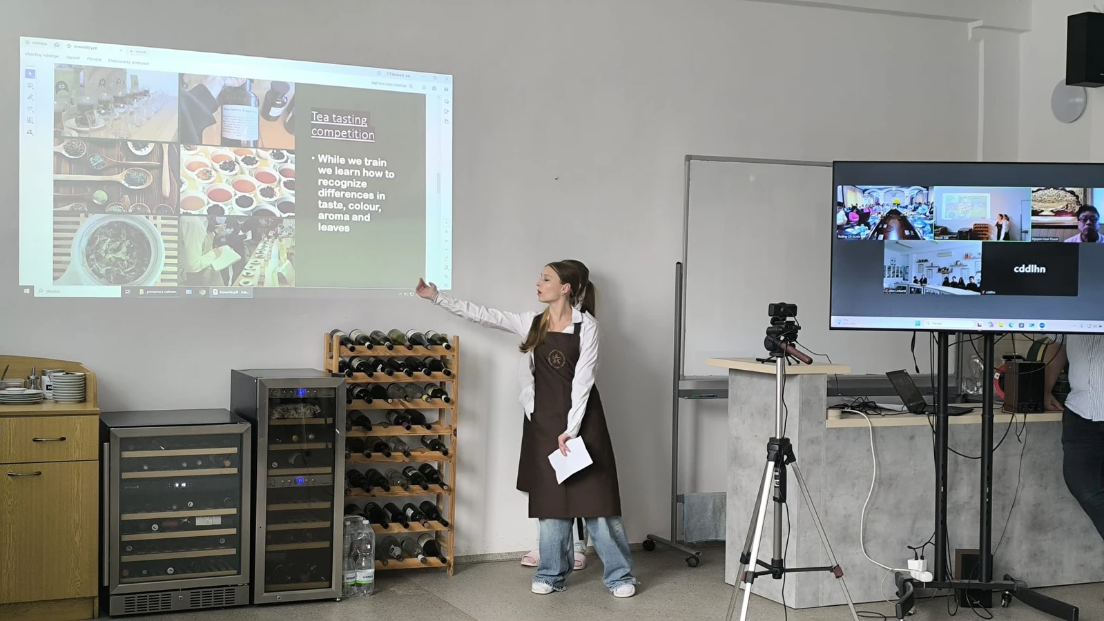 Za naši školu vystoupili žáci oborů Cestovní ruch a Hotelnictví, kteří připravili tematické prezentace zaměřené na Českou republiku, přípravu čaje a sommeliérství. Následná diskuse umožnila oběma stranám sdílet zkušenosti, porovnat přístupy ke vzdělávání a představit zajímavosti z praxe i výuky.