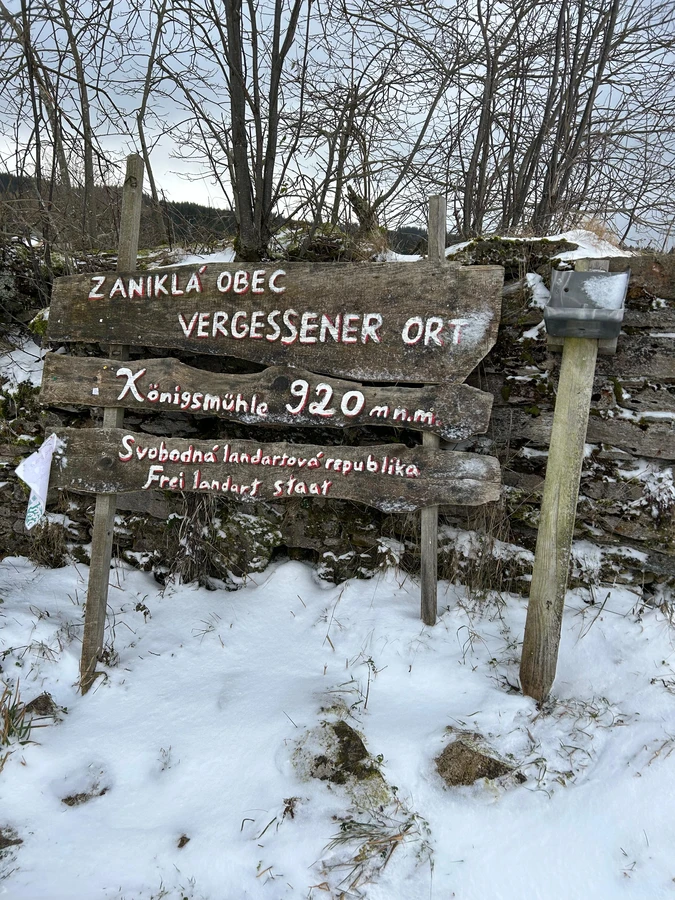 S každým ujetým kilometrem jsme se stále více přibližovali drsné realitě horského počasí. Zatímco v nižších polohách bylo jen chladno, výše nás přivítala hustá mlha, silný vítr a zasněžená krajina pokrytá jemnou vrstvou námrazy. Naše první plánovaná trasa vedoucí ke Königsmühle byla bohužel nesjízdná, a tak jsme zvolili alternativní cestu. Ta nás dovedla až k hranici zákazu vjezdu, odkud už jsme pokračovali pěšky. Následovala cesta, kterou bychom zpětně popsali jako adrenalinovou, a to nejen kvůli mrazu a sněhu, ale také kvůli překvapivým situacím, které na nás čekaly.