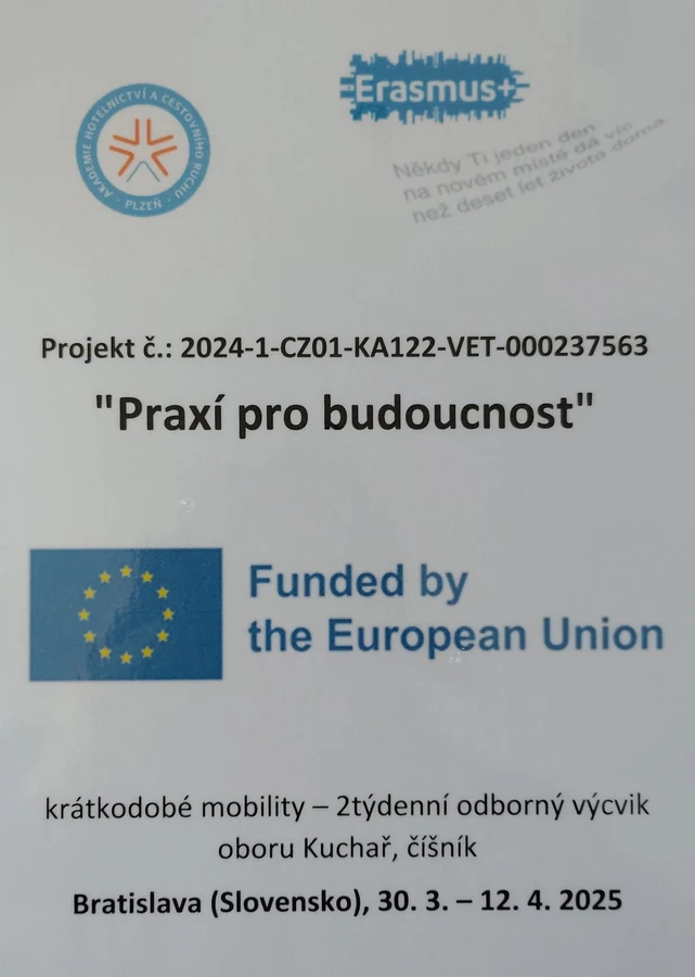Dne 30. dubna vyrazili naši žáci na čtrnáctidenní odbornou stáž do slovenské metropole Bratislavy v rámci programu Erasmus+.
