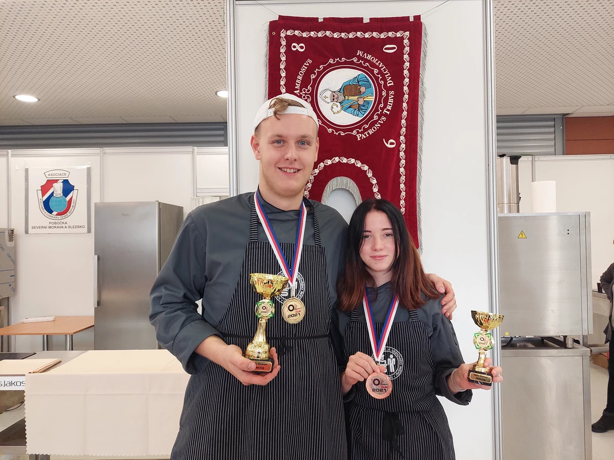 Na svou první soutěž vyrazila dvojice studentů KČ2 (2. ročník kuchař-číšník). Jejich vystoupení se po náročném tréninku skutečně vydařila.