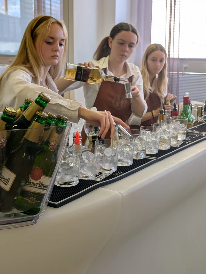 Součástí večera bylo také párování originálních míchaných nápojů, které exkluzivně pro tuto událost vytvořil Jan Zlámaný, známý barman a akreditovaný školitel České barmanské asociace. Na přípravě a servisu drinků se podílely také naše žákyně, které úspěšně absolvovaly barmanský kurz – jejich zapojení významně přispělo k profesionálnímu průběhu celé akce.