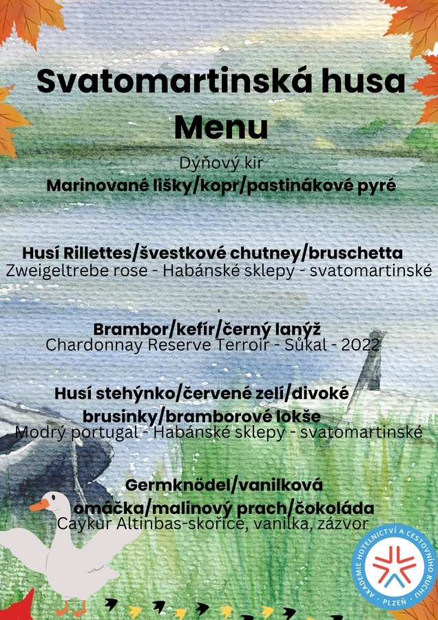 s radostí Vás zveme na tradiční svatomartinské menu, které pro Vás připravily maturitní třídy HT4 a CR4! Tento listopadový svátek uctíme nezapomenutelným gastronomickým zážitkem, který propojí klasiku s moderní kuchyní.