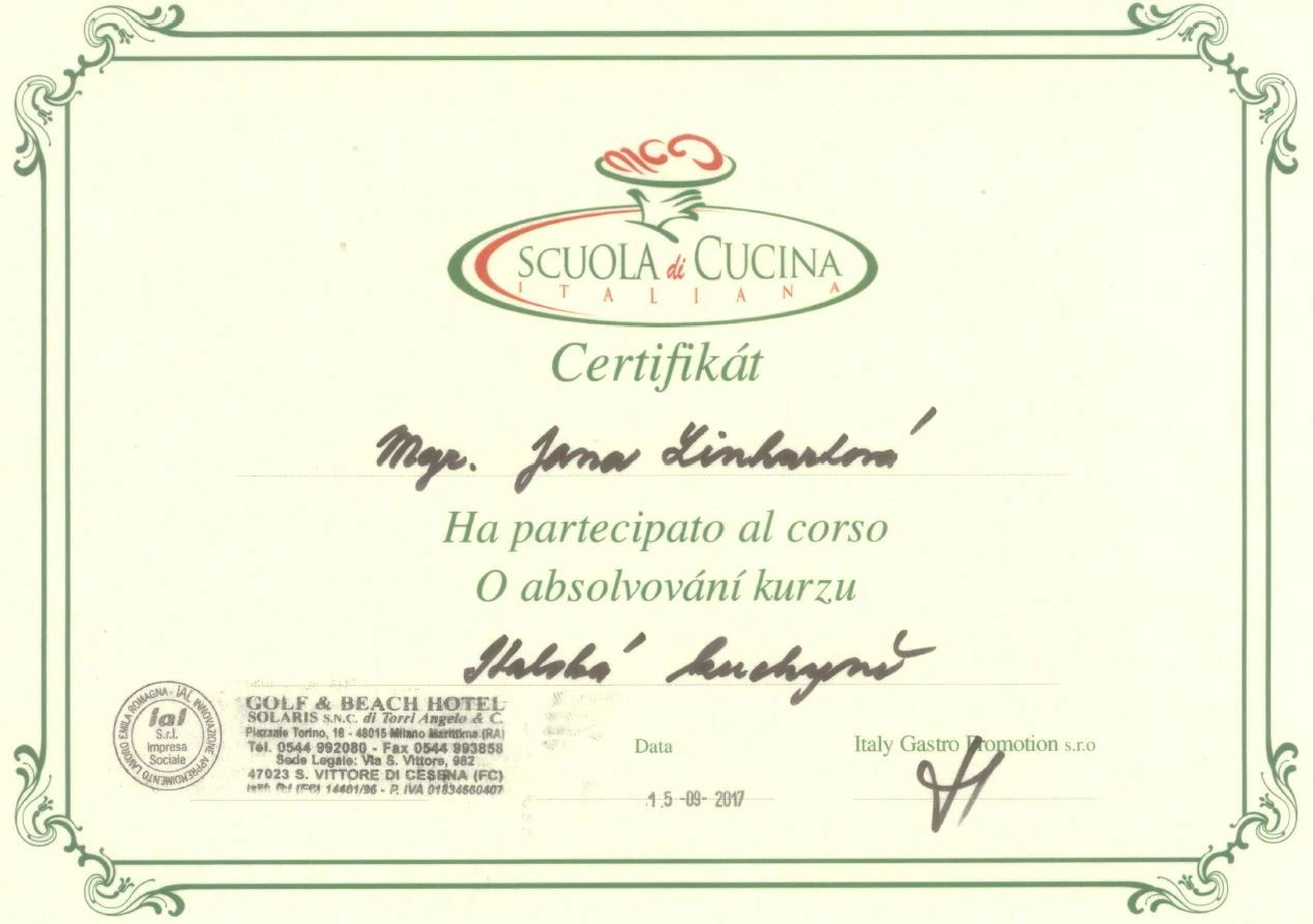 Nicméně řada názvů italských pokrmů a surovin je celosvětově uváděna pod svými původními italskými názvy a praktické pochopení významu původních italských názvů byl velice přínosný pro všechny absolventy kurz, viz například názvy těstovin, čerstvě vyrobených: