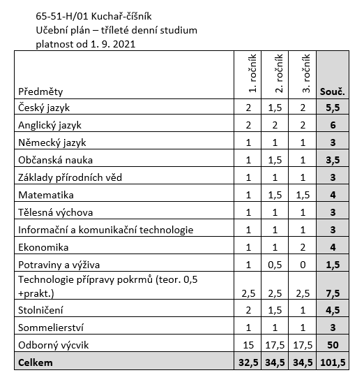 Učební Plán učebního oboru 65-51-H/01 Kuchař-číšník
