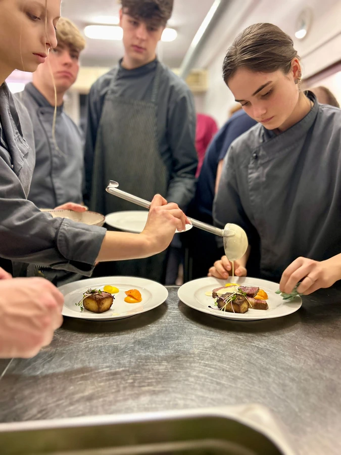 Dne 15.2.2024 uspořádali žáci třídy HT4 (Hotelnictví) banketní večeři v salonku AHCR. Večeře byla na téma Svatý Valentýn a vše se neslo v zamilovaném duchu. Servírovalo se Valentýnské menu, k jídlu se podávala výborná vína a o zábavu se postaral Valentýnský kvíz.