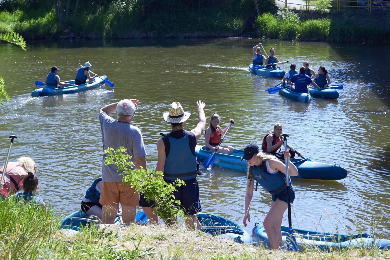 Řada budoucích vodáků ochutnala slasti mokrého putování dnes úplně poprvé. Nicméně základní předpoklad, chuť vyzkoušet nepoznané, se dnes potkal s ideálním počasím a s dobrou náladou. Na úplném začátku byl pro některé studenty problém objet mostní pilíř kolem dokola, na závěr vodáckého tréninku skoro všichni kormidelníci zkušeně střídali pádlování s kormidlováním, háčkové ukázkově slunění s rebelií, prostě všechno jak má být. Odpoledne se role otočily a háčkové se většinou prohodili s kormidelníky, nicméně žádná změna, na háčku rebelie, na kormidle kvalita.