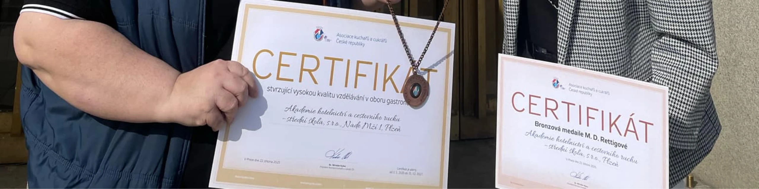 Toto ocenění potvrzuje vysokou kvalitu odborného vzdělávání, které naše škola dlouhodobě poskytuje v gastronomických oborech. Z přibližně 140 škol v České republice, které vyučují gastronomii či cukrářství, je členem AKC ČR přibližně polovina. Certifikaci letos získalo pouze osm škol z celé republiky – jsme hrdí, že právě naše škola je jednou z nich.